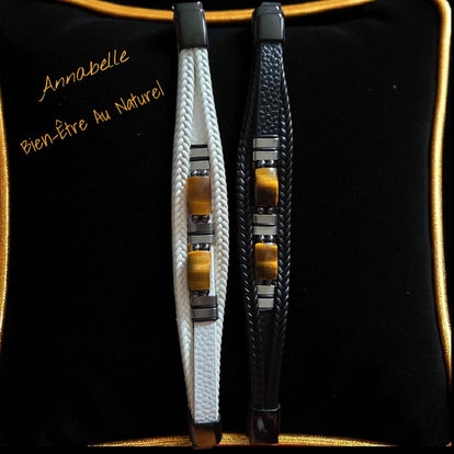 Découvrez l'alliance parfaite entre luxe et bien-être avec notre bracelet tressé disponible en noir ou en blanc, sublimé par des pierres naturelles d'oeil de tigre authentiques.