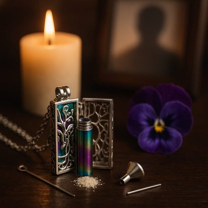 Découvrez notre collier pendentif Urne polyvalent, un bijou unique mêlant de subtiles couleurs rose, bleue et arcs-en-ciel, créant un effet visuel magnifique. Ce pendentif est idéal pour porter un hommage à un être cher disparu, ou bien pour conserver un souvenir précieux d'un être aimé encore présent. Que ce soit des cheveux, des ongles ou de petits objets significatifs, ce pendentif vous permet de garder ces souvenirs près de vous, avec élégance et discrétion, au quotidien .