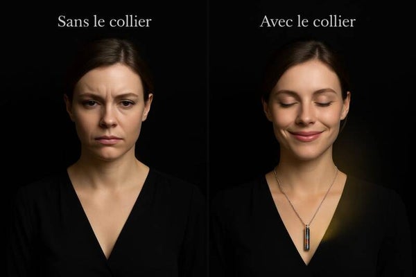 Le collier sera livré avec une fiole contenant déjà des pierres travaillées par mes soins , ainsi que quelques tampons permettant d'utiliser uniquement les huiles essentielles sans les pierres, si vous le souhaitez.