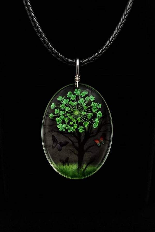 Collier pendentif Arbre de Vie en forme de goutte d'eau petit modèle de couleur verte