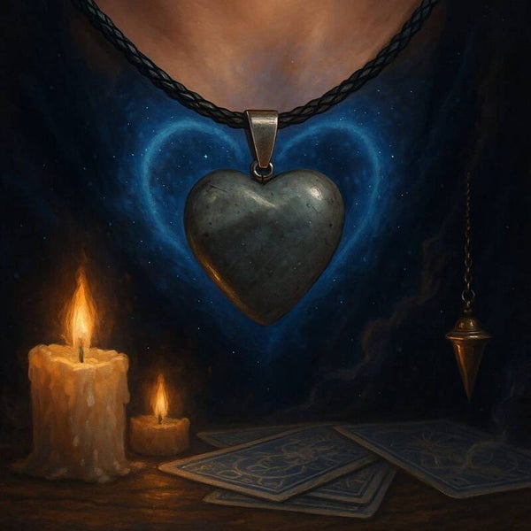 Découvrez notre collier pendentif en labradorite grise, taillé en forme de coeur, mesurant entre 1 et 2 centimètres. Il est accompagné d'une cordonnette noire élégante, que vous pouvez changer selon vos envies.